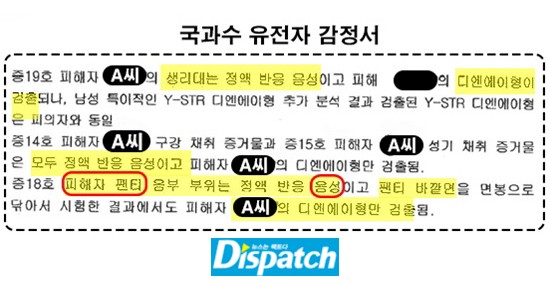③ 마지막으로, 국과수 감정서다. 한 마디로, DNA 감식 결과다.