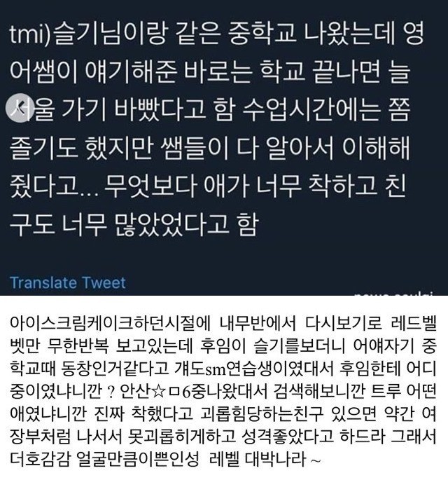 한편 팬들은 말도 안된다는 반응을 보이며, 과거 슬기의 미담을 모아 공유하기도 했습니다.