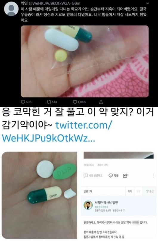 팬들은 네이버 지식인을 통해 직접 약사에게 문의를 했고, 우울증 약이 아닌 감기약이라는 것을 밝혀냈습니다. 또한 졸업생을 인증했던 사진 또한 포털 사이트 검색으로 쉽게 찾을 수 있던 것.