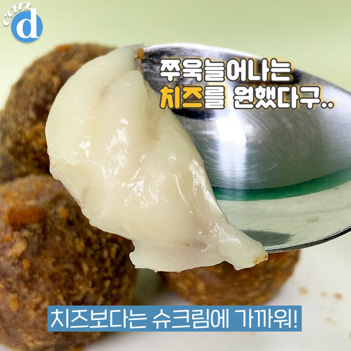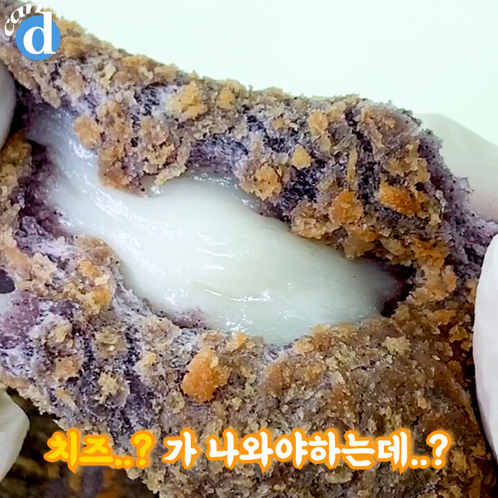 쫀득한 흑미 반죽이, 그 안에는 치즈..!가 나와야 하는데 말이죠..?