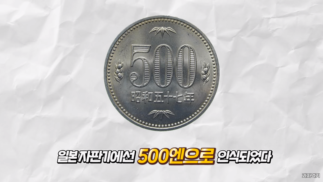 당시 한국 동전 500원짜리와 일본 500엔짜리는 모양이 비슷했습니다. 심지어 지름도 같았죠. 한국 500원짜리에 구멍을 뚫어 무게를 조금만 낮추면 일본 자판기가 500엔으로 인식할 정도였습니다.