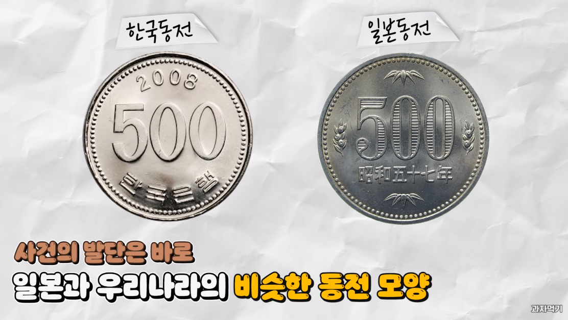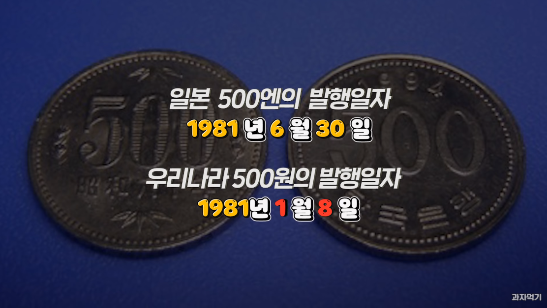 우리나라 500원 발행일자는 1981년 1월 8일. 우리나라가 먼저 500원을 만든 것. 결국 일본은 기존 발행된 500엔을 모두 회수하고, 새로운 크기의 신형 500엔을 발행했다는데요.