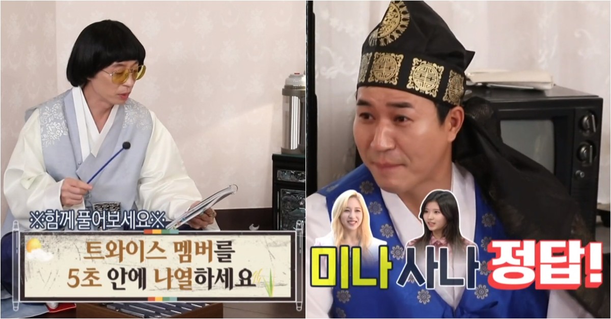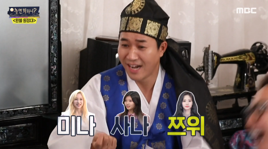 지미유는 추석 특집 방석퀴즈 문제로 "트와이스 멤버 이름을 5초 안에 말하세요" 라고 말했는데요. 봉원과 지섭의 처절한(?) 도돌이표 대결이 펼쳐졌습니다.