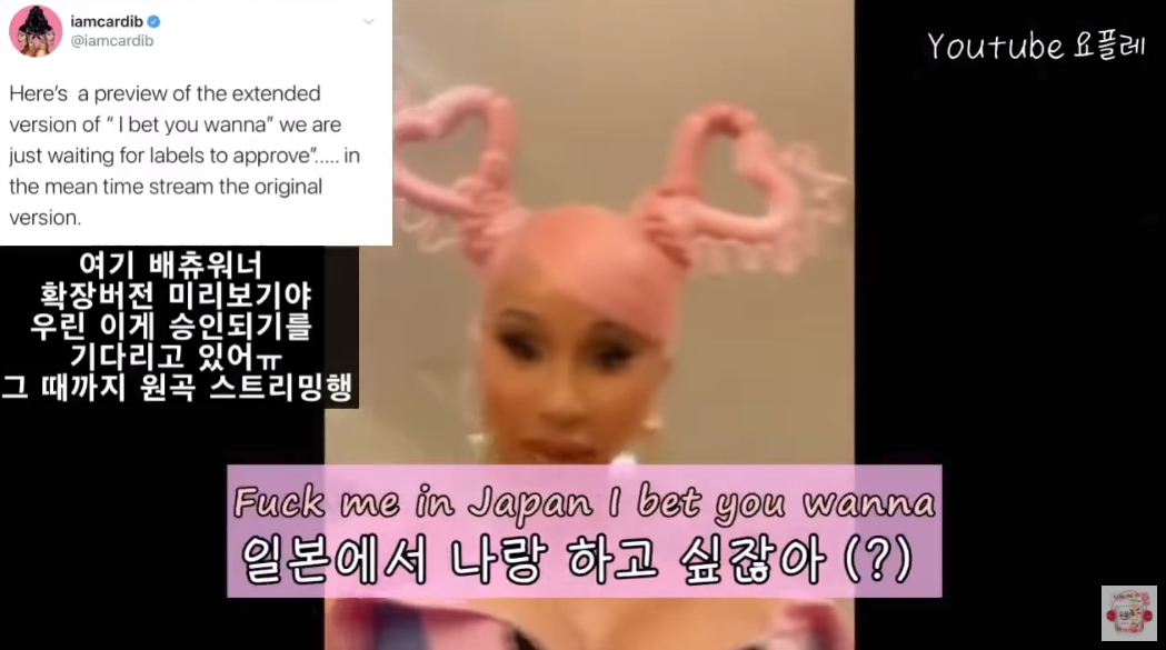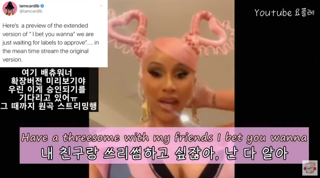 카디비는 "이 버전을 틀었더니 걔네들(블랙핑크)이 '노' 라고 했어"라고 말했습니다. 자신이 부르는 오리지널 버전 가사도 공개했는데요.