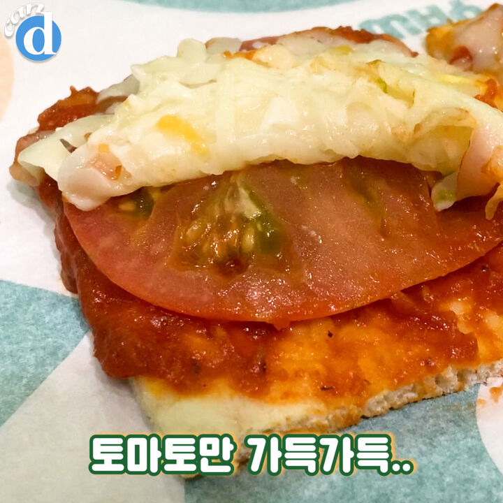 치즈를 걷어보니 토마토소스와 토마토뿐!