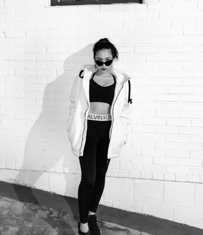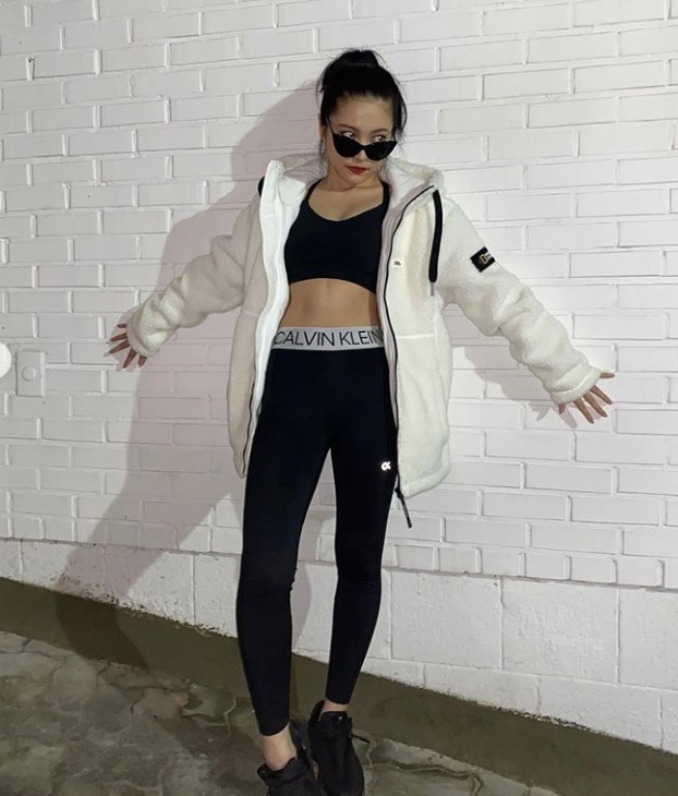 사진 속 예리는 블랙 색상의 브라톱에 레깅스를 매치해 스포티하면서도 섹시한 룩을 완성했습니다. 보온성을 높이고자 화이트 아우터를 걸쳤죠.
