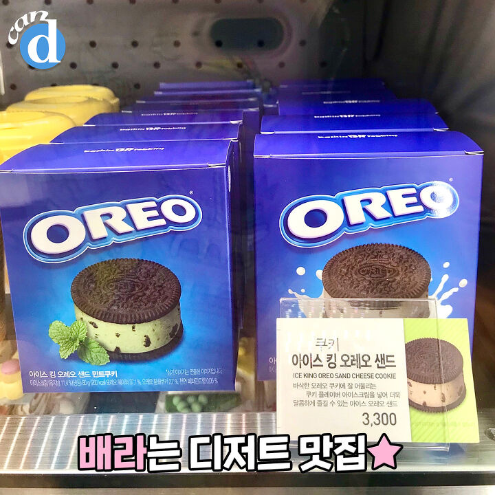 -아이스 킹 오레오 샌드(3,300원) 밀크 쿠키, 민트 쿠키 두 가지 맛이에요.