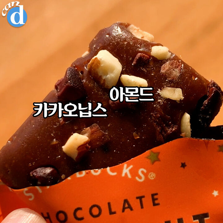 찐~한 초코맛의 캔디에 카카오닙스와 아몬드가 큼직큼직 박혀있어요.