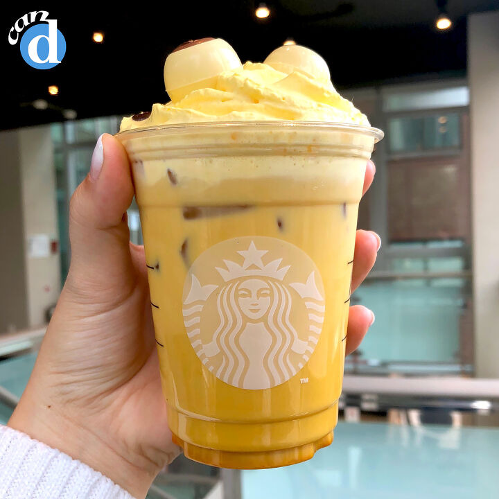 밑에는 차이시럽+단호박 소스가 가라앉아 있어요. 가~득 들어있진 않고 그냥 얇게 깔려있음!