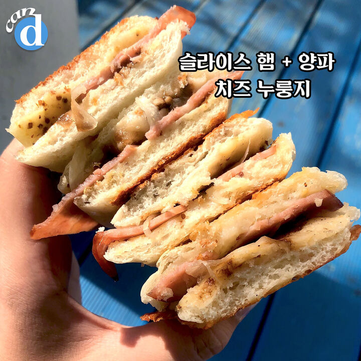 단면은 쏘 심플~ 짭짤한 슬라이스 햄이랑 양파가 들어있어요. 햄이..넘나 얇은 것.