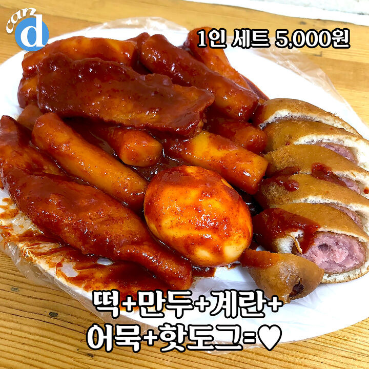 떡, 만두, 계란, 어묵, 핫도그가 들어있어요. 1인분인데도 은근 양이 많더라구요.