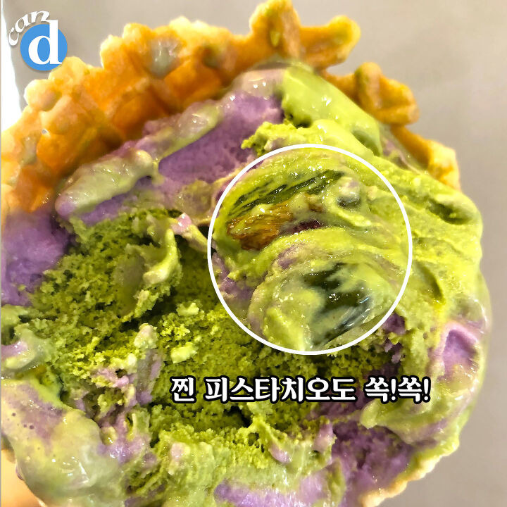 겉으로만 봐서는 몰랐는데 찐 피스타치오도 들어있어요. 한 스푼 깊숙이 뜨는 순간 등장.