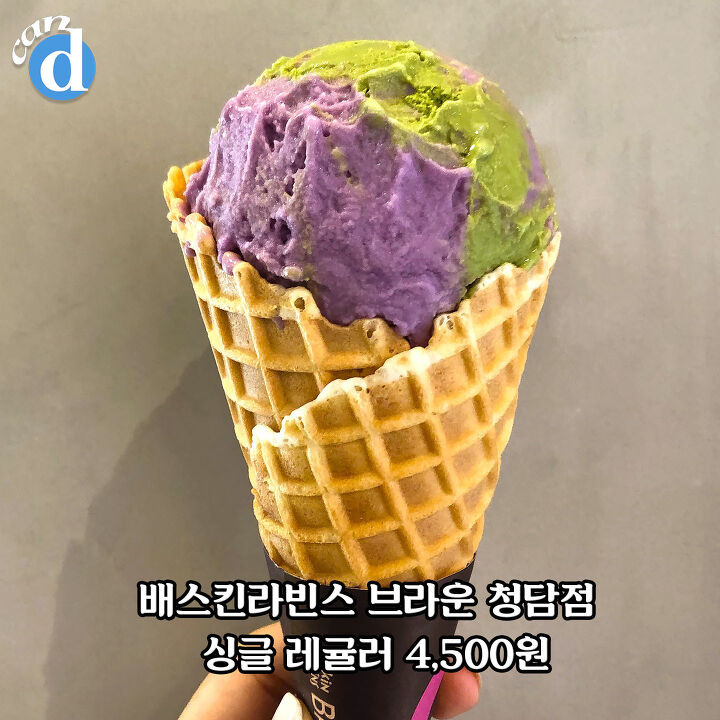 배스킨라빈스 브라운 청담점에서 구매했어요. 싱글 레귤러 4,500원.