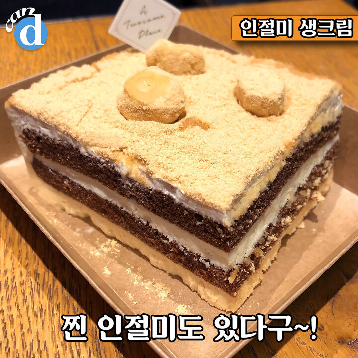 다음으로는 인절미 케이크 차례! 위에 인절미 3알이 올라가 있어요.