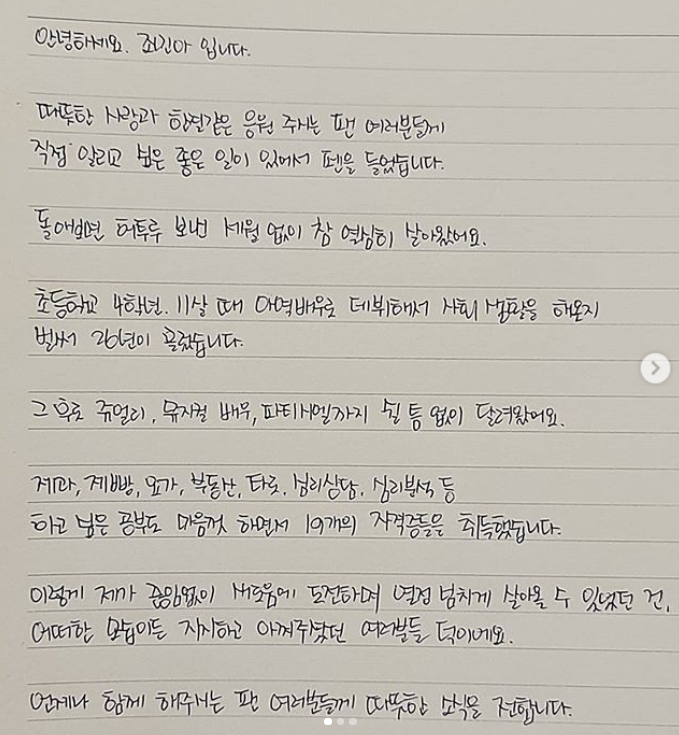 따뜻한 사랑과 한결같은 응원 주시는 팬 여러분들께 직접 알리고 싶은 좋은 일이 있어서 이렇게 글을 씁니다.