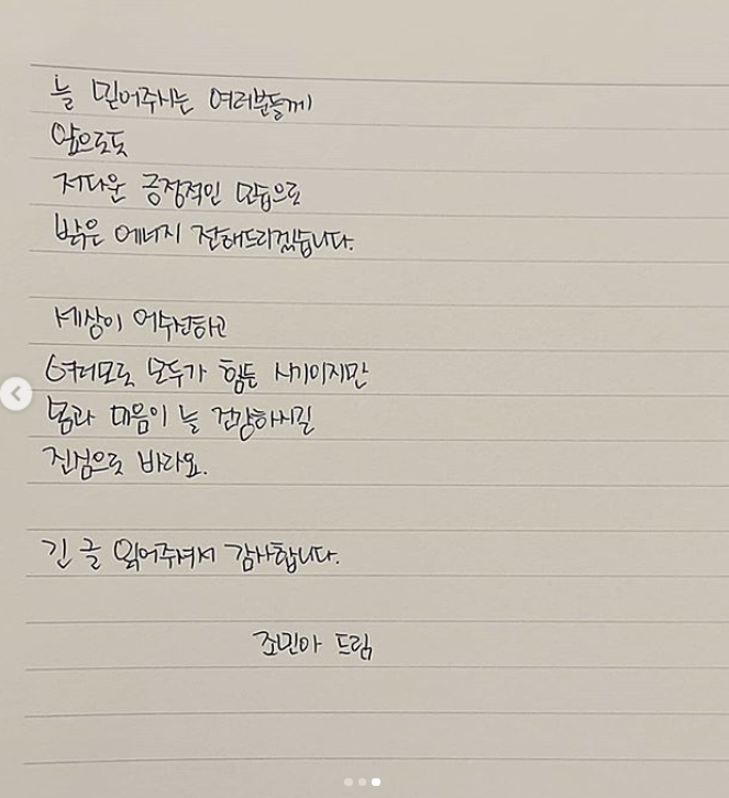 늘 믿어주시는 여러분들께 앞으로도 저다운 긍정적인 모습으로 밝은 에너지 전해드리겠습니다.