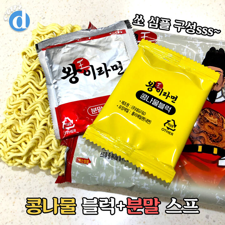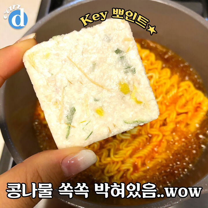 요 라면의 뽀인트! 시원한 국물을 담당해줄 콩나물 블럭이 들어있어요.