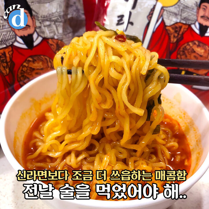 신라면보다 조금 더 매콤한 맛이에요. 약간 진라면 매운맛 정도?