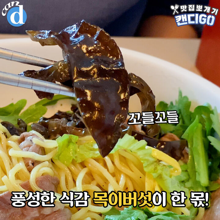 생면의 씹는 맛, 아삭한 야채, 부드러운 고기 사이에서 빛나는 존재감을 보여준 목이버섯!