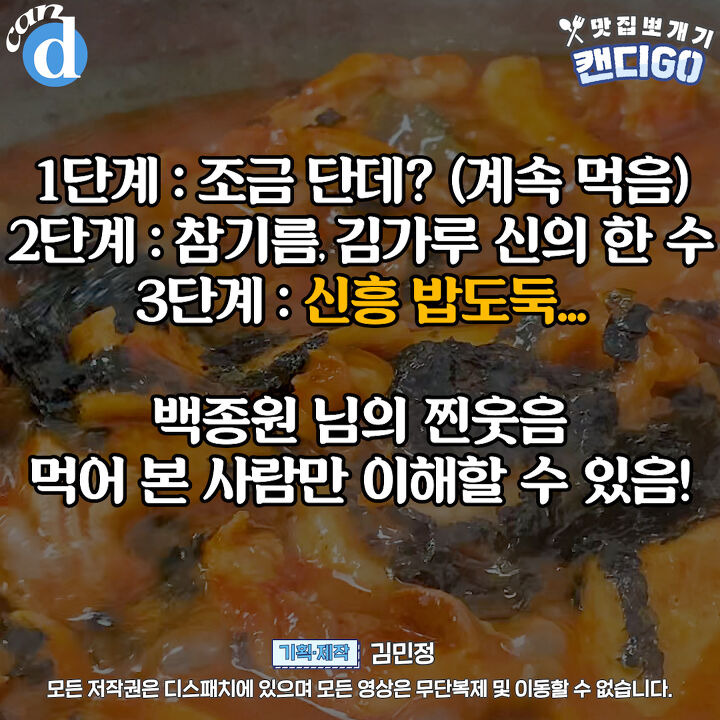 지난주 백종원 님이 웃고 또 웃으며 시식했잖아요. 캔디도 딱 그랬어요.