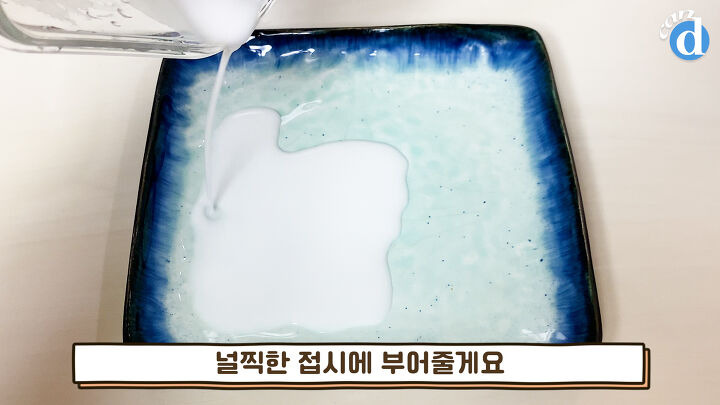 평평한 접시에 넓게 펴준 전분물은 전자레인지 50초씩 3번 돌려줄게요~