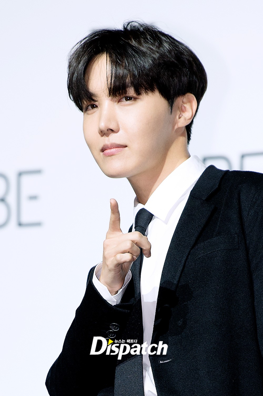 제이홉은 이날 올블랙 패션으로 댄디한 매력을 뽐냈다. 매력 넘치는 포즈로 시선을 사로잡았다.