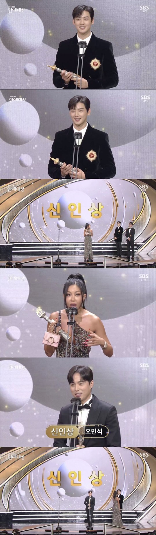 신인상 수상자도 쟁쟁했다. 차은우(집사부일체), 제시(제시의 쇼!터뷰), 오민석(미운 우리 새끼)이 가능성을 인정받았다.