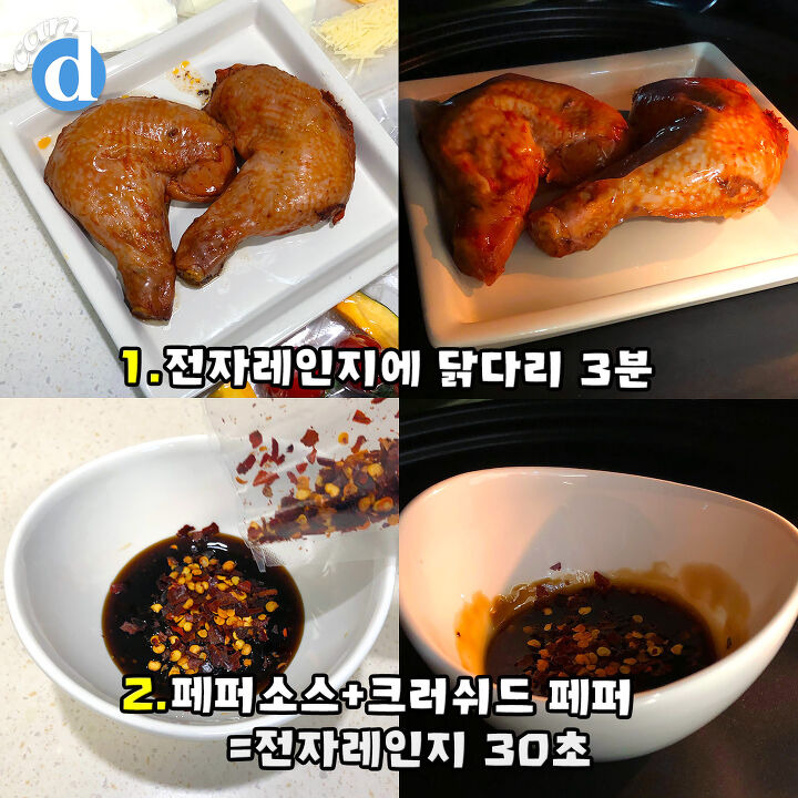 먼저 전자레인지에 닭다리를 약 3분간 돌려주기.