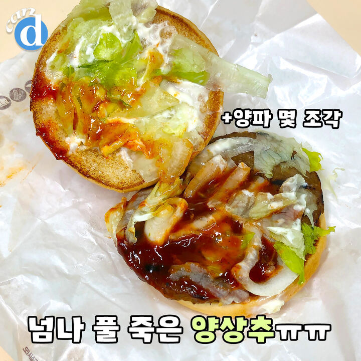 넘나 풀 죽은 양상추가 부실하게 들어있어요. 느끼함 잡아줄 양파도 쪼끔.