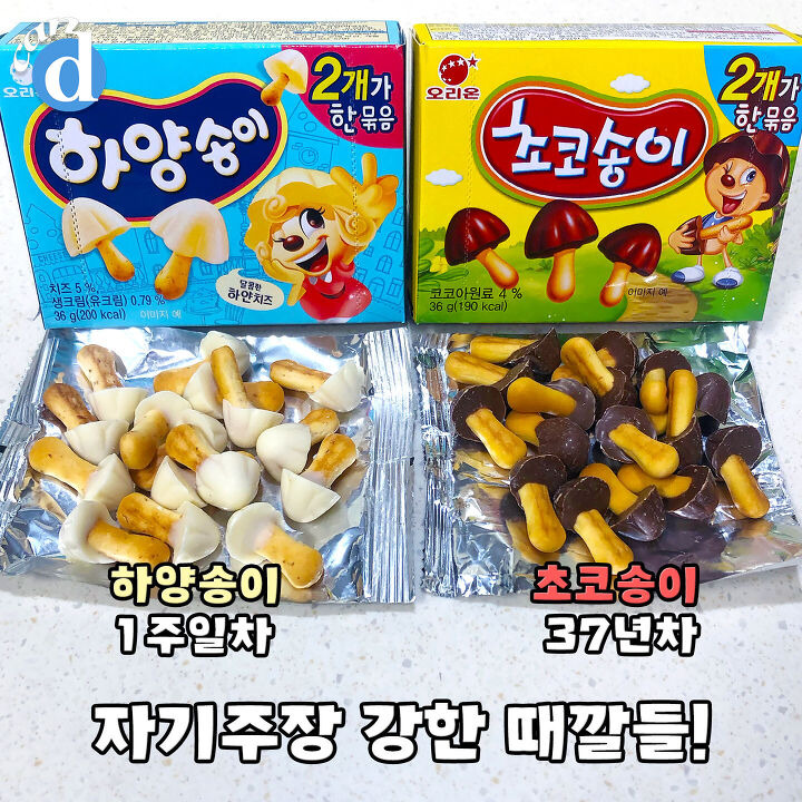 과자 인생 37년 차 초코송이와 갓 데뷔한 하양송이의 만남. 이름답게 일단 때깔부터 확 차이나요ㅋㅋ