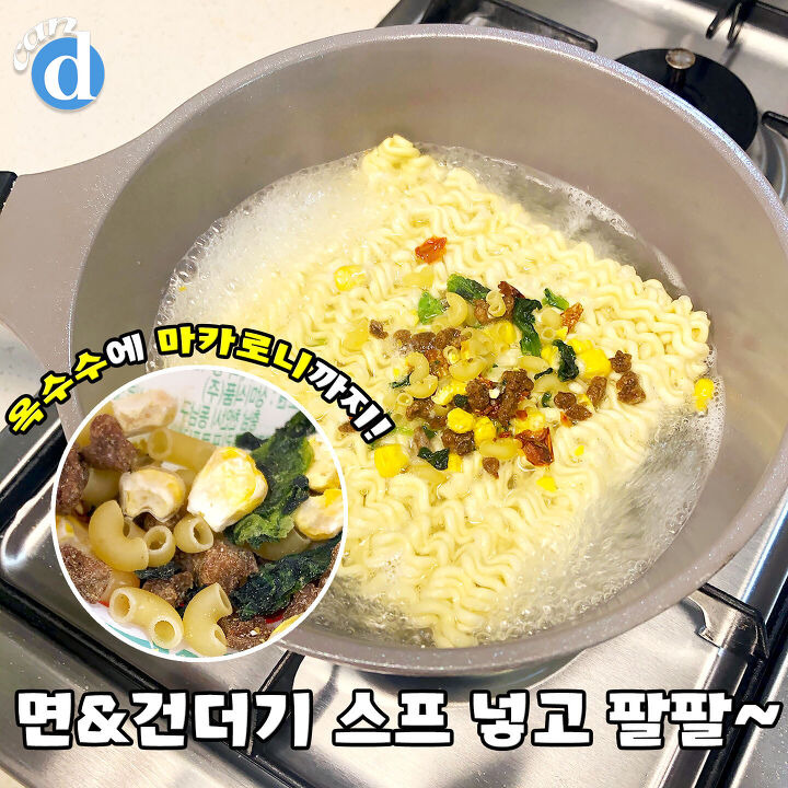 잘 익은 건더기들도 쏙쏙 골라먹기. 쫀쫀한 마카로니랑 톡톡 터지는 옥수수 덕분에 식감까지 챙겨줘요.
