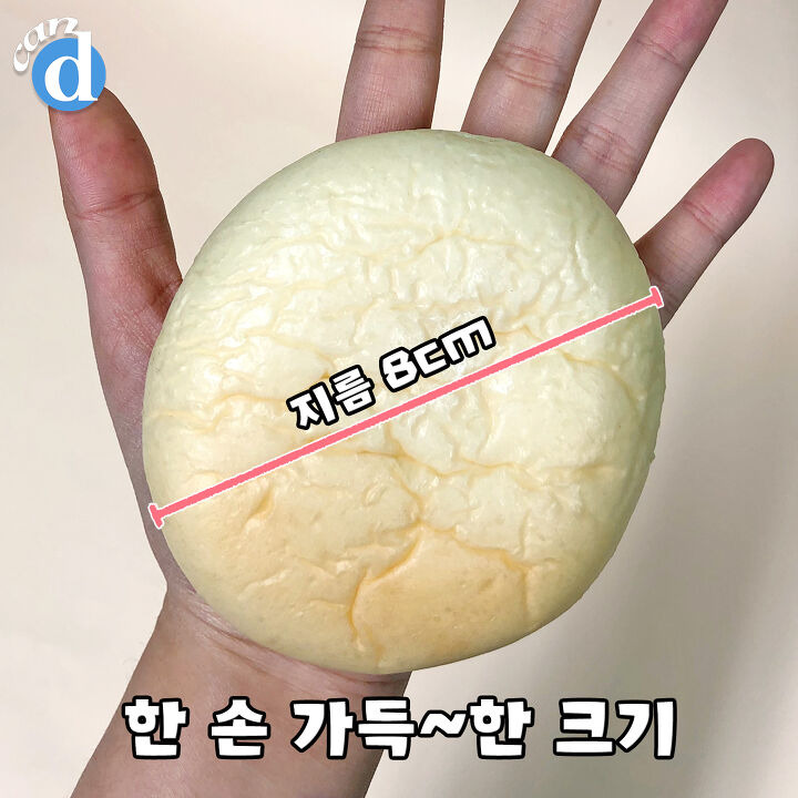 순진우유 시리즈 답게 뽀얀 비주얼 자랑하는 순진 우유 크림빵. 지름 약 8cm로 한 손 가득 들어오는 크기에요.