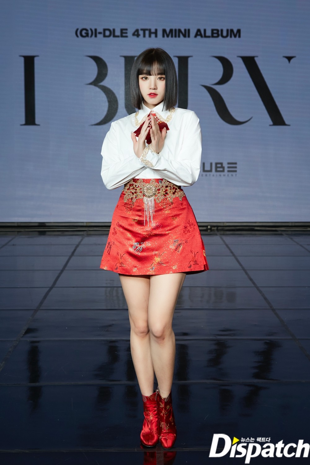 [Dispatch=송효진기자] 그룹 '(여자)아이들' 우기가 11일 오후 온라인으로 진행된 미니 4집 'I burn(아이 번)' 쇼케이스에서 포즈를 취하고 있다.