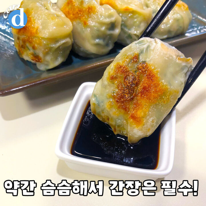 군만두파 모여라! 겉바속촉 노릇하게 잘 구워진 만두 등장이오. 약간 각진 만두 모양이라 잘 굴려가며 구워줘야 해요.
