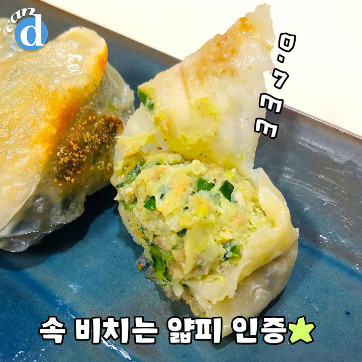 구울 때도 느꼈지만 만두피가 얇긴 얇더라구요. 안에 푸릇푸릇한 야채들이 보일 정도ㅋㅋ