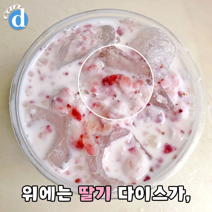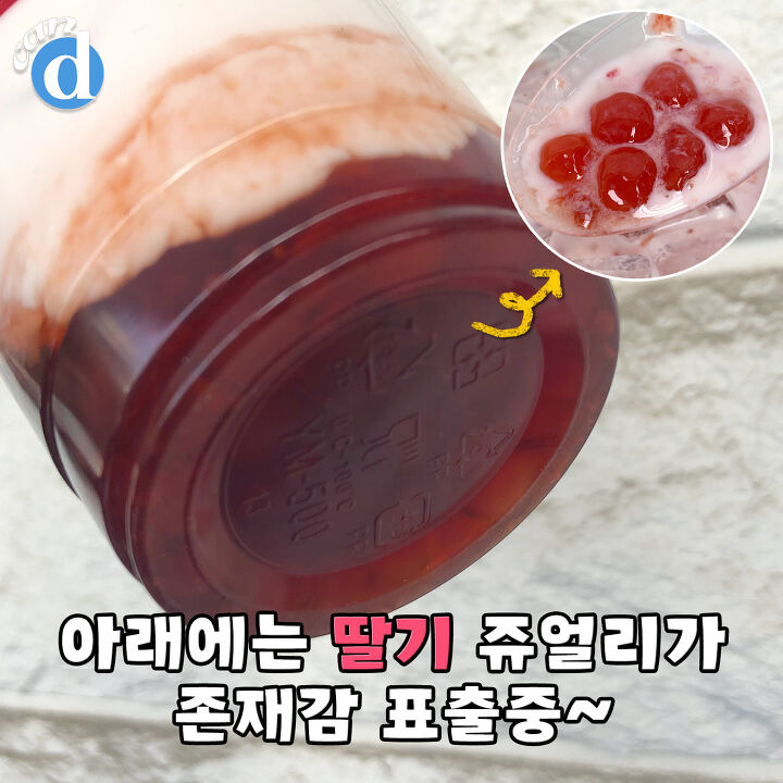 대신 음료에 잘 녹아들어 딸기 맛을 한껏 살려줬답니다.