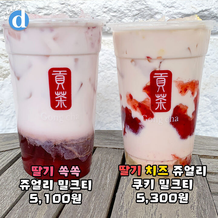-딸기 치즈 쥬얼리 쿠키 밀크티 : 5,300원 -딸기 치즈 쿠키 크러쉬 : 5,500원