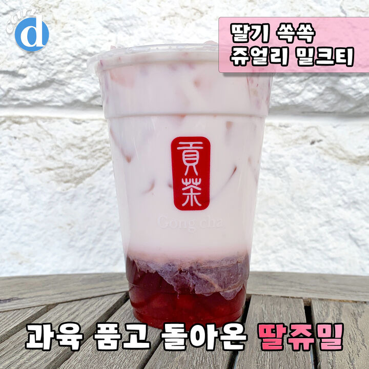 기존의 딸기 쥬얼리 밀크티와 유사하지만, 딸기 과육을 더한 제품이라고 해요.
