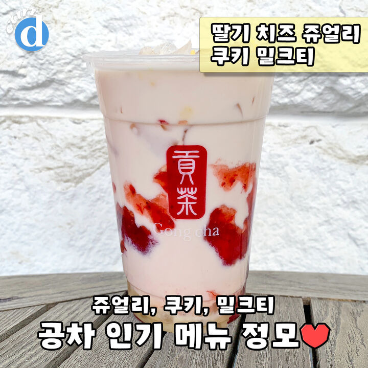 캔디는 공차 딸기음료 부동의 1인자, 딸기 쥬얼리 밀크티와 닮은 음료들로 골라봤어요. 벌써부터 기대 만발ㅎ