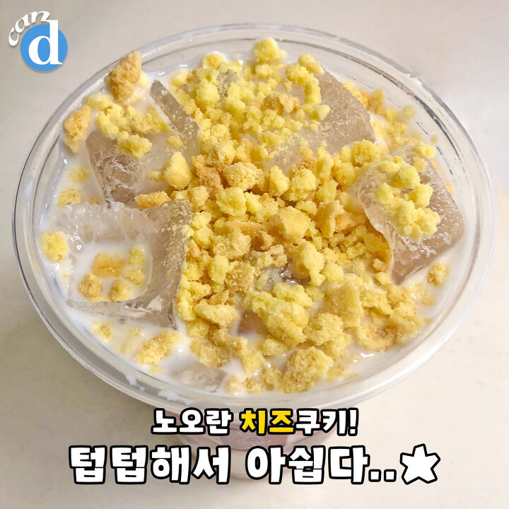 따로 먹었을 때는 고소한 치즈 맛이 좋았는데요. 음료에 섞어서 먹으니까 텁텁하게 느껴져서 아쉬웠어요.