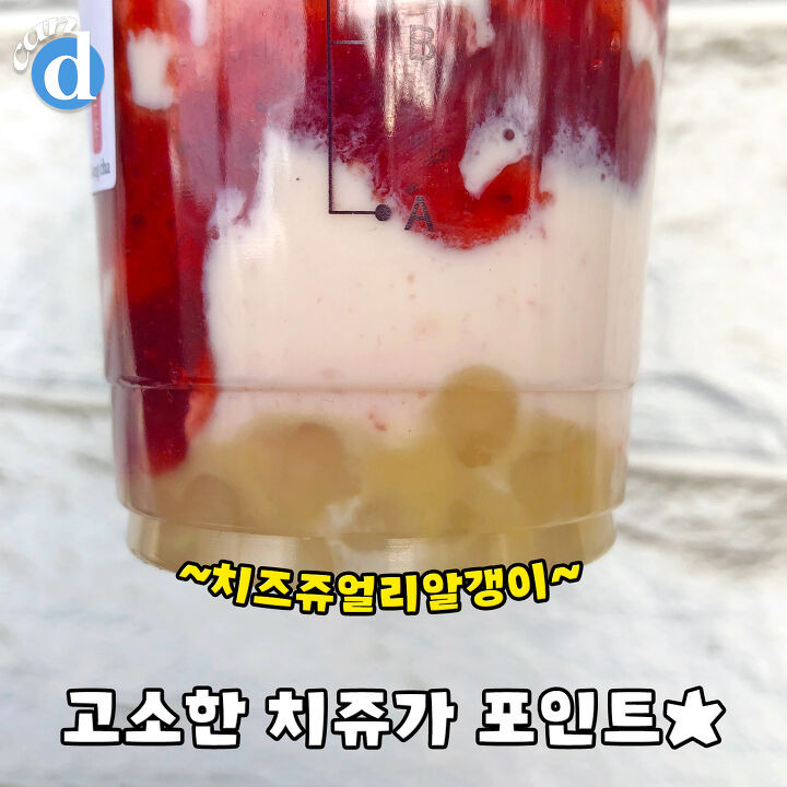 딸기 밀크티에 치즈가 더해지니 배스킨라빈스 사랑에 빠진 딸기와 비슷한 맛이 나더라구요.