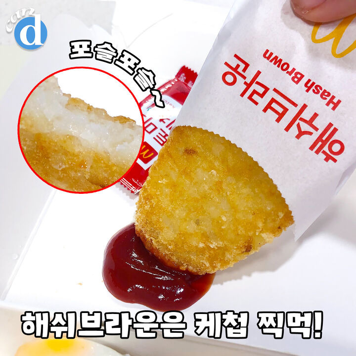 제일 먼저 애피타이저, 해쉬 브라운부터 먹어줄게요. 포장해서 오는 길에 약간 눅눅쓰 해졌지만