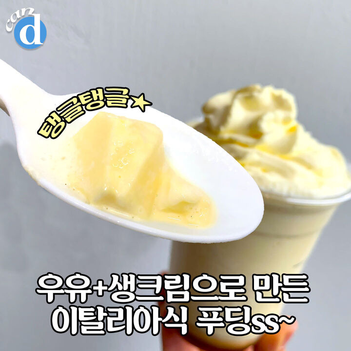 요 푸딩은 우유와 생크림을 더해 만들었다고 해요. 탱글탱글하게 씹히는 달달한 푸딩. 바닐라 맛이 강한 느낌이에요.