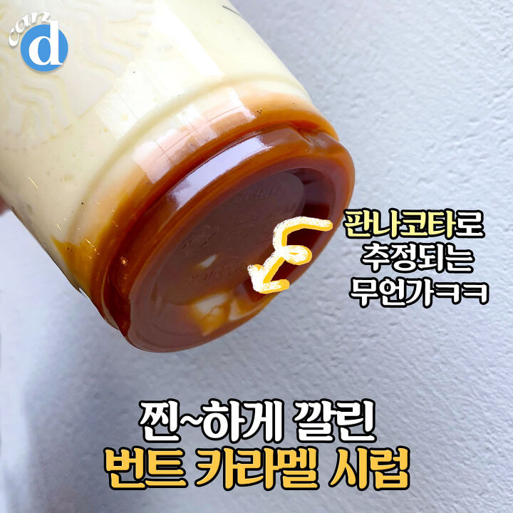 밑에는 찐~한 번트 카라멜 시럽이 자리하고 있어요.