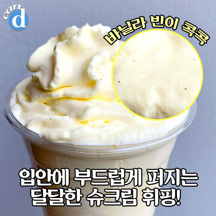 바닐라 빈도 콕콕 박혀있답니다. 음료 먹기 전 휘핑만 호로록 먹어봤는데요.