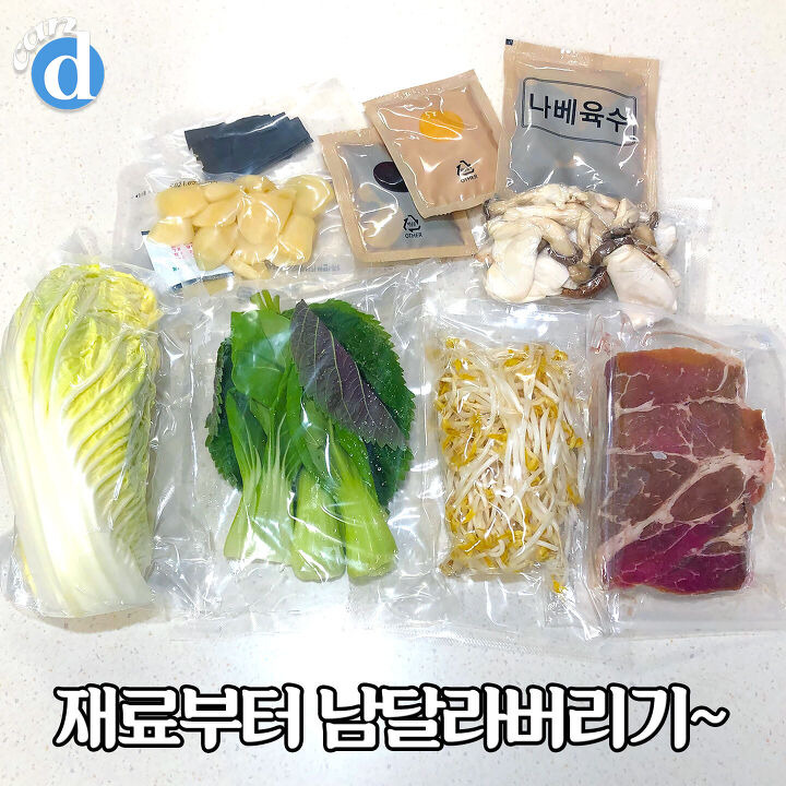 배추, 깻잎, 청경채, 숙주나물, 소고기. 다시마, 수제비, 버섯(새송이, 느타리, 표고)이 들어있어요.