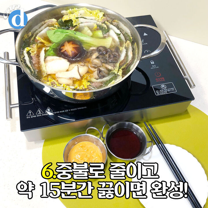 중불에서 약 15분간 바글바글 끓여주면 완성이랍니다. 그냥 밀푀유 나베만 생각했을 때는