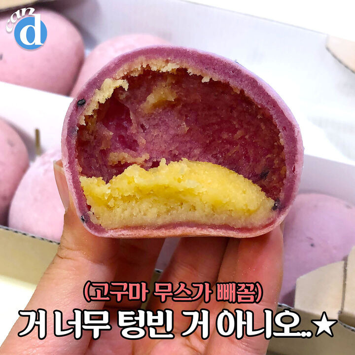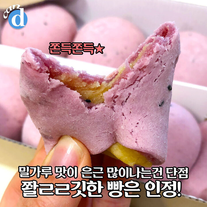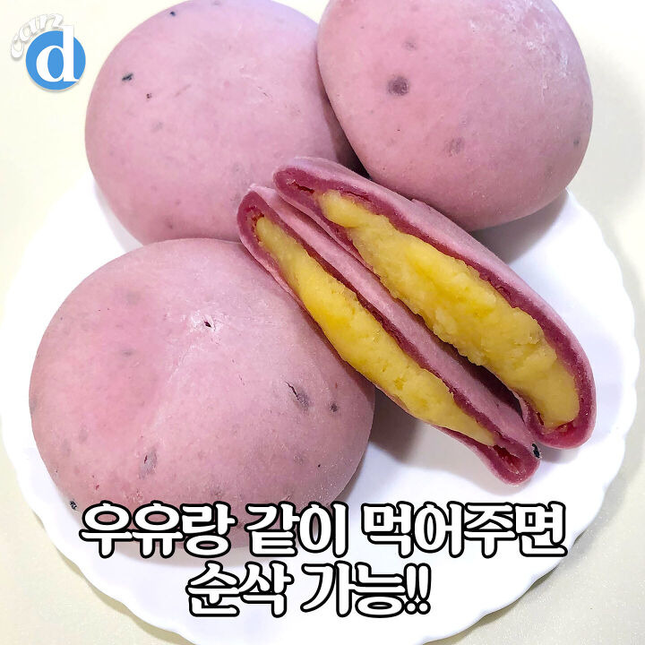 고구마 품은 빵이 오늘의 주인공! 자색고구마 갈아 넣은 색깔이 뽀인트예요★
