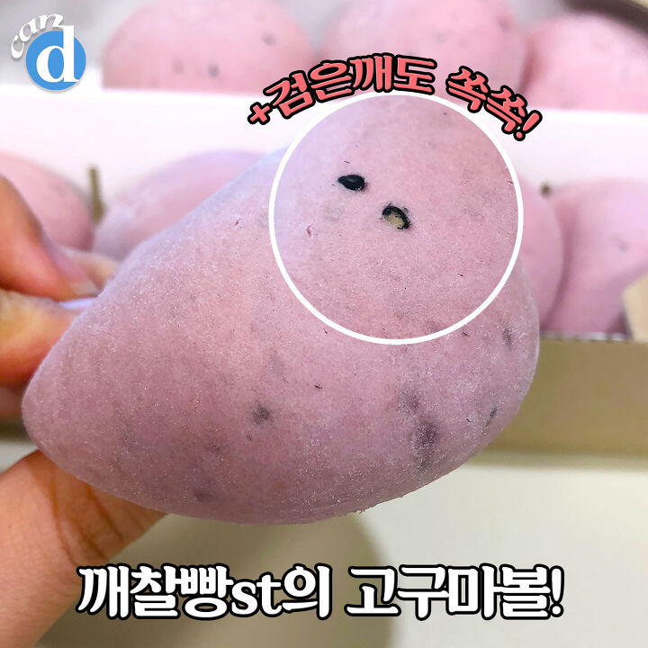 빵 겉에는 검은 깨도 콕콕 박혀있더라구요. 쫠깃한 깨찰빵 느낌의 고구마볼!