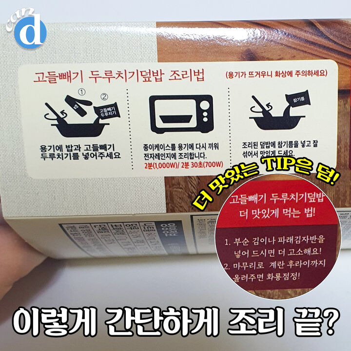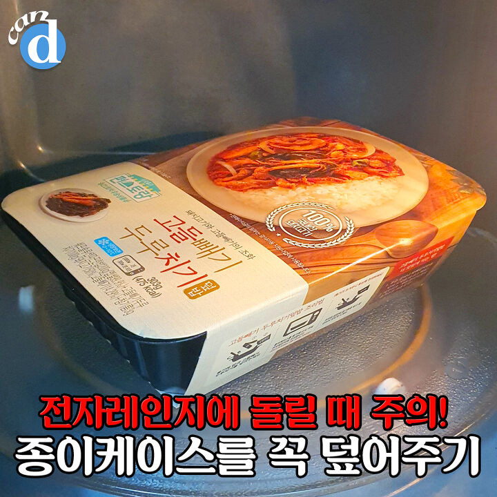 주의! 전자레인지에 돌릴 때는 내용물이 안에서 튈 것을 대비하여 꼭 종이케이스를 덮어주세요.
